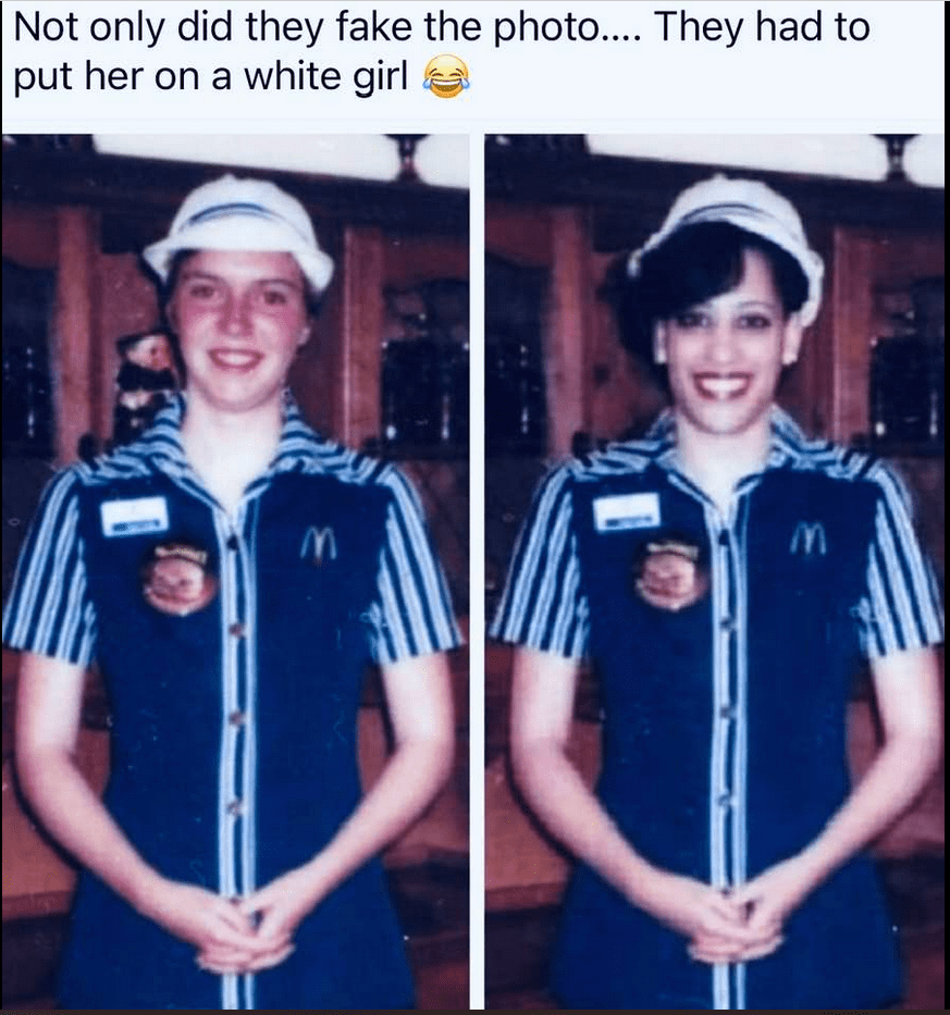 Not only photo shopped a “white” female but photo shopped from the memorial page of a “white” female who lost her life to a Cancer.